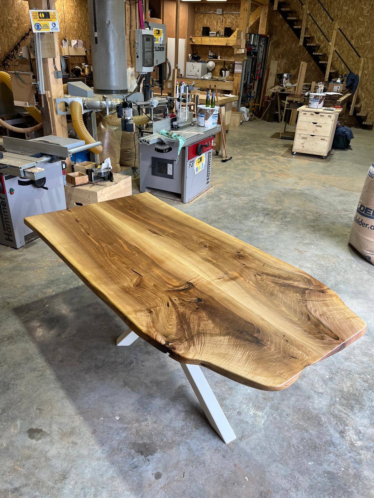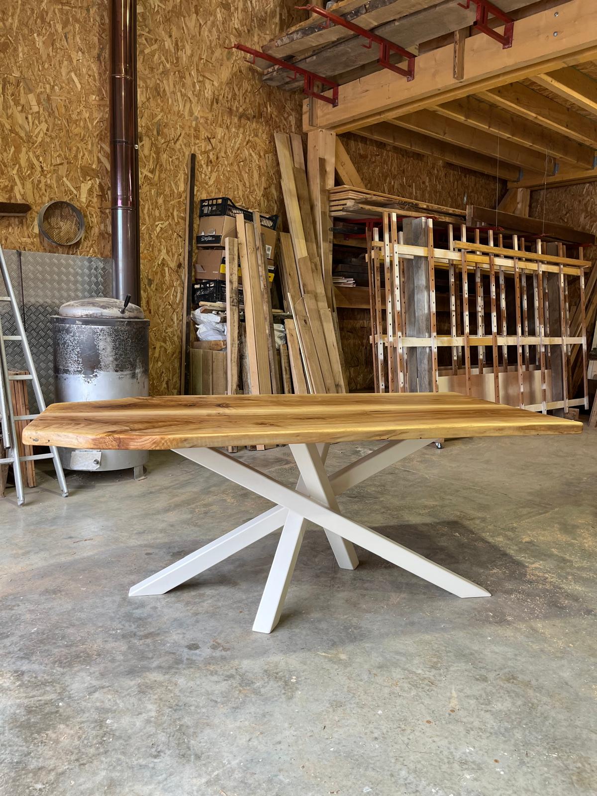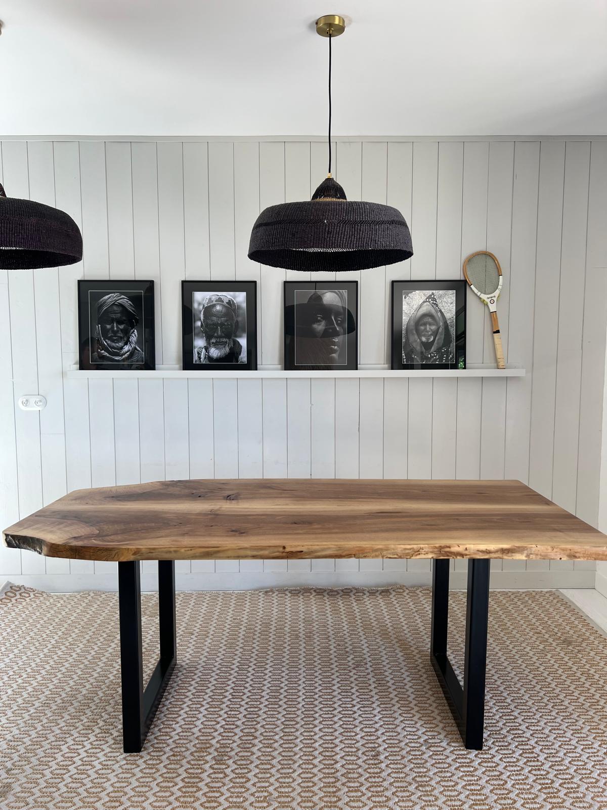 Description : Plateau : noyer massif Épaisseur plateau : 4 cm Piétement : acier Forme piètement : formes aux choix Peinture thermolaquée : couleurs aux choix Finition : vernis mat incolore Délai de fabrication : 2 semaines Prix: 1680€