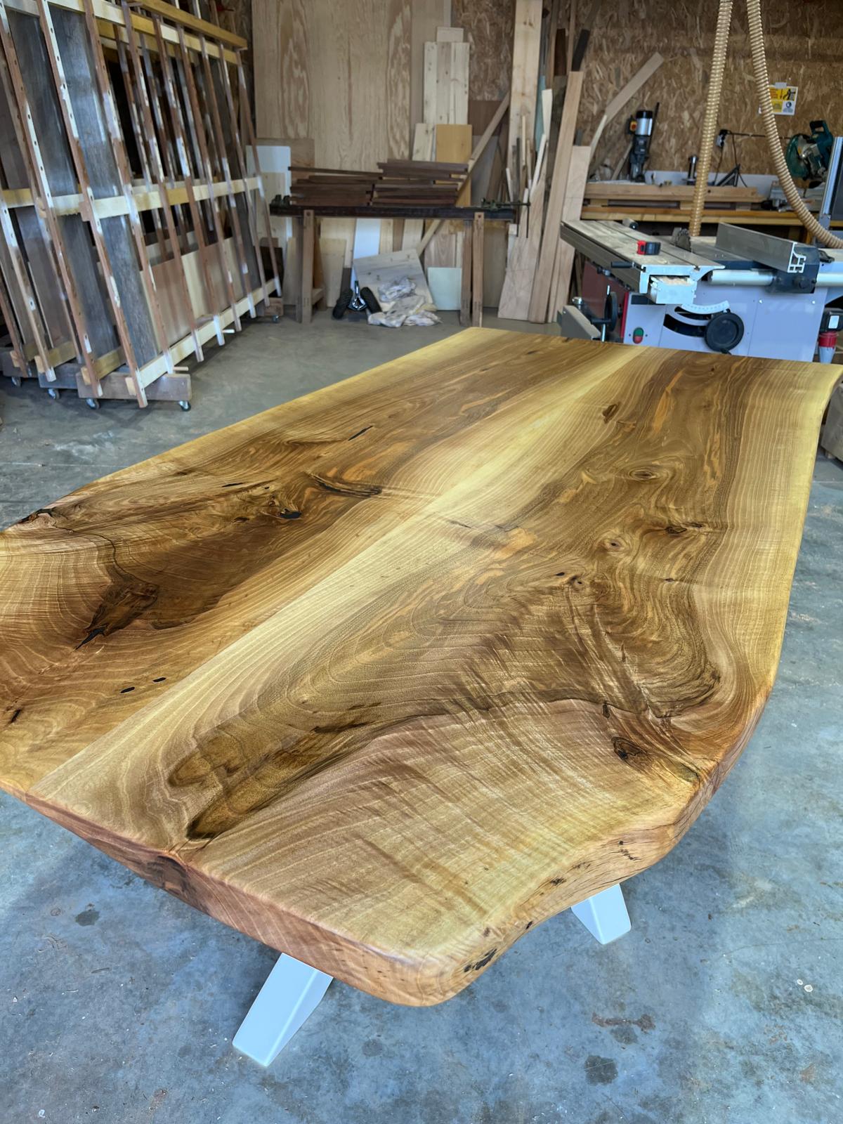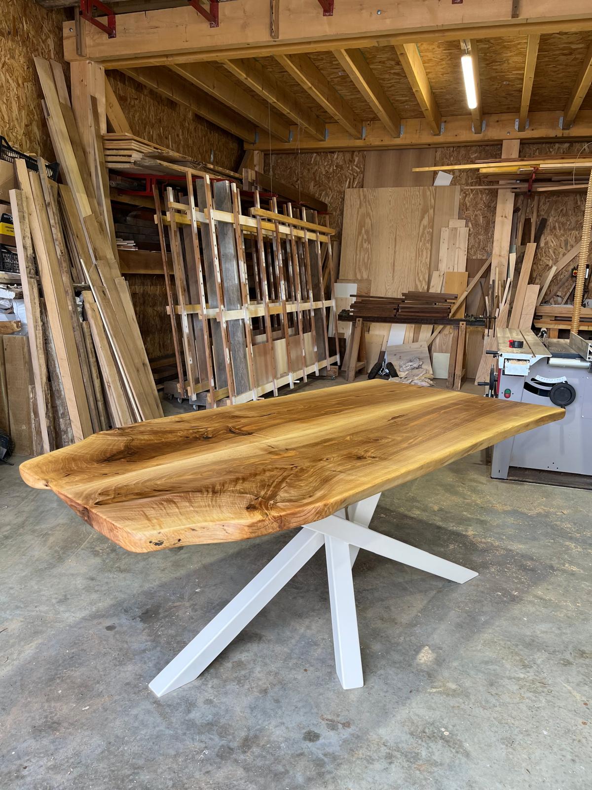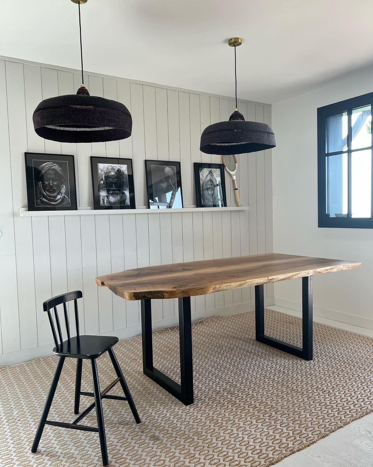 Description : Plateau : noyer massif Épaisseur plateau : 4 cm Piétement : acier Forme piètement : formes aux choix Peinture thermolaquée : couleurs aux choix Finition : vernis mat incolore Délai de fabrication : 2 semaines Prix: 1680€
